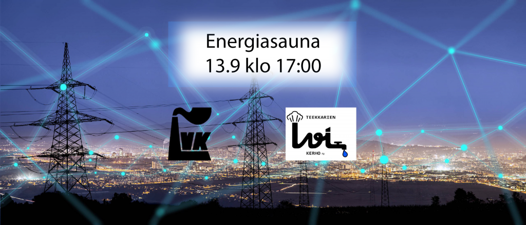 Energiasauna on tuhannen taalan paikka saada kuulla lisää energia-alasta ja energiatekniikan opiskelusta! Tule tutustumaan, kyselemään ja kuulemaan mitä kerholaisilla on kerrottavaa. Luvassa on myös kahden energia-alan yrityksen ja koulun edustajan puheenvuorot! Tilaisuus järjestetään yhdessä Teekkarien LVI-kerhon kanssa 13.9. klo 17 alkaen internetin syövereissä.