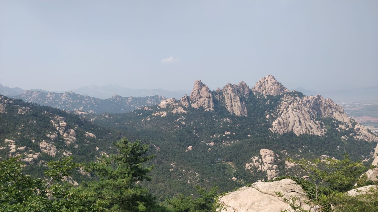 After the miraculous swinging on the cable car, we started a climb upwards to see the best scenery. During the hike, we had to go through a mysterious cave that was formed by large boulders laying between parallel mountain walls. As brave club members, we survived the slippery stones and narrow hollows and made it to the most beautiful vantage point in the Laoshan mountain; Yangkou.
